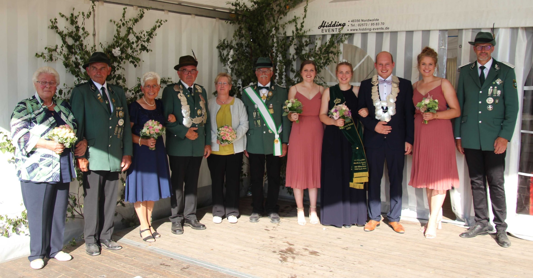 Das Ergebnis begeistert alle, denn mit Hubertus Reinert als neuem Schützenkönig und seiner Königin Eva-Maria Lutum belegt ein Königspaar den Thorn, das aus zwei traditionsreichen Schützenfamilien stammt. Ehrendamen sind Elena Ahlers und Annette Beier.